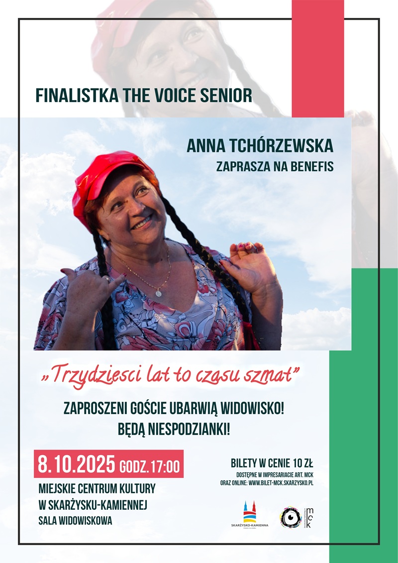 8 października 2025 r. w sali widowiskowej Miejskiego Centrum Kultury w Skarżysku-Kamiennej odbył się wyjątkowy wieczór – benefis Anny Tchórzewskiej zatytułowany „Trzydzieści lat to czasu szmat”. Wydarzenie zgromadziło liczną publiczność, przyjaciół, współpracowników i wielbicieli talentu artystki, którzy wspólnie świętowali jej trzydziestoletnią działalność na scenie.