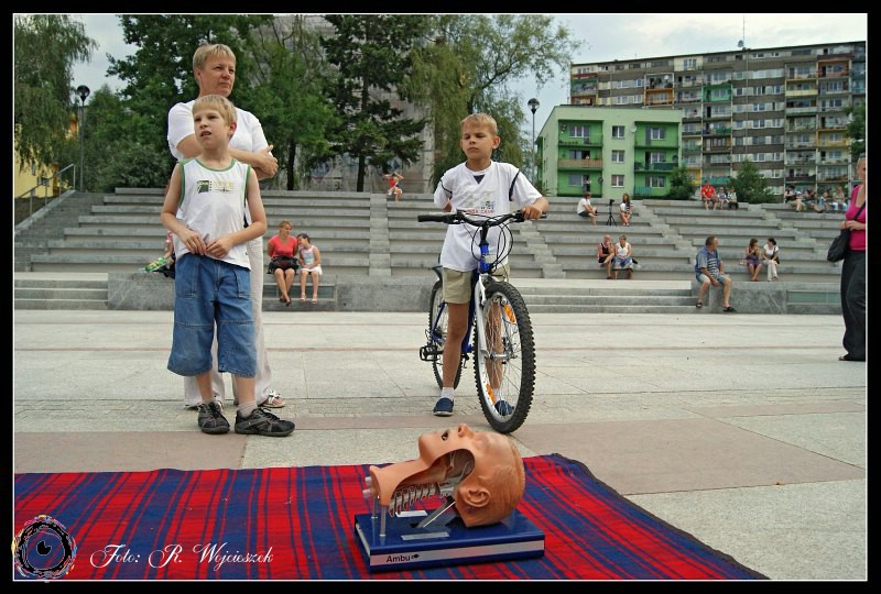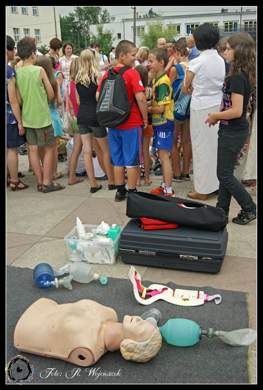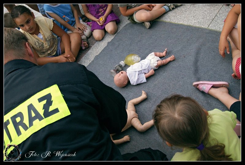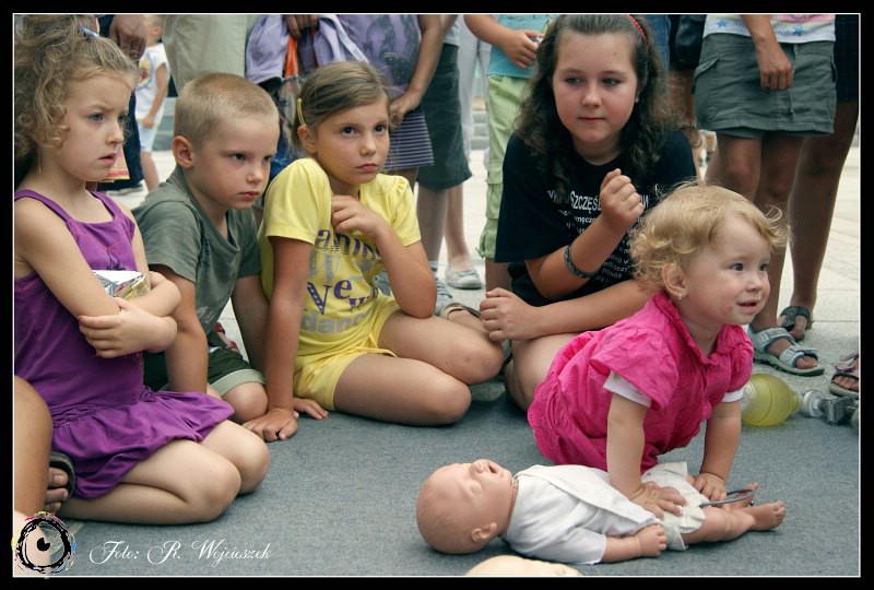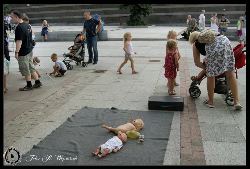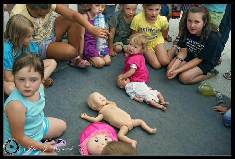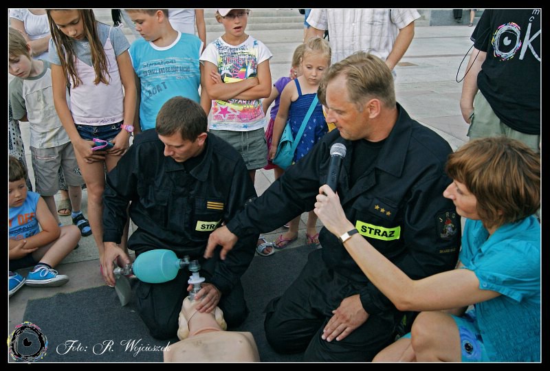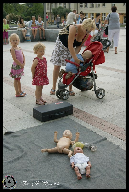 Tym razem na Placu Staffa, zaraz po bajkowym seansie w Miejskim Centrum Kultury, zaprosiliśmy wszystkich chętnych na lekcje z zakresu udzielania pierwszej pomocy.