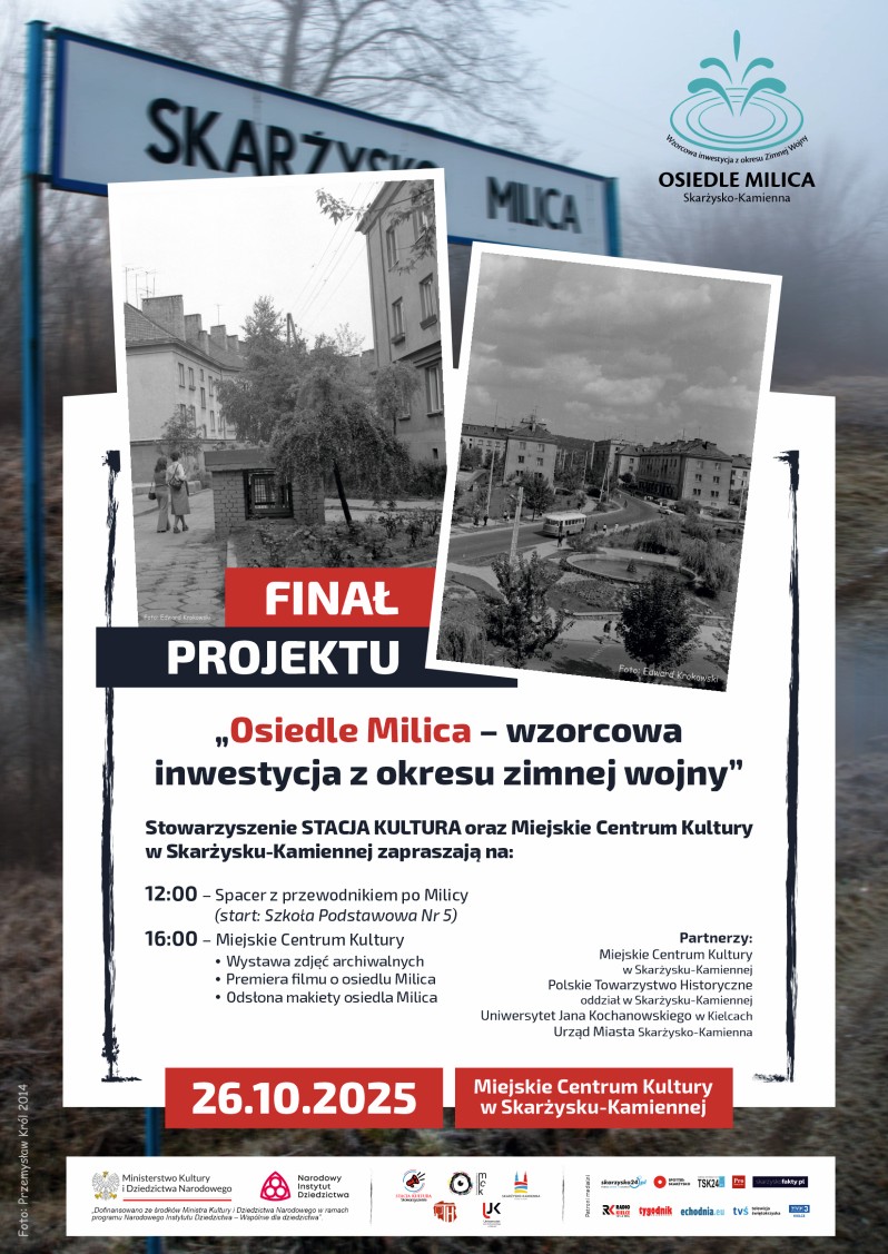 26 października 2025 r. w Miejskim Centrum Kultury w Skarżysku-Kamiennej odbył się finał projektu „Osiedle Milica – wzorcowa inwestycja z okresu zimnej wojny”, dofinansowanego przez Narodowy Instytut Dziedzictwa w ramach programu „Wspólnie dla dziedzictwa”.